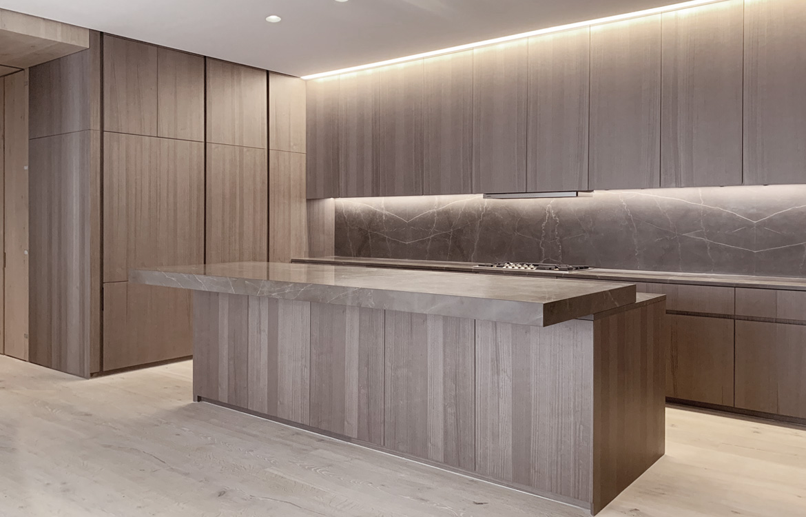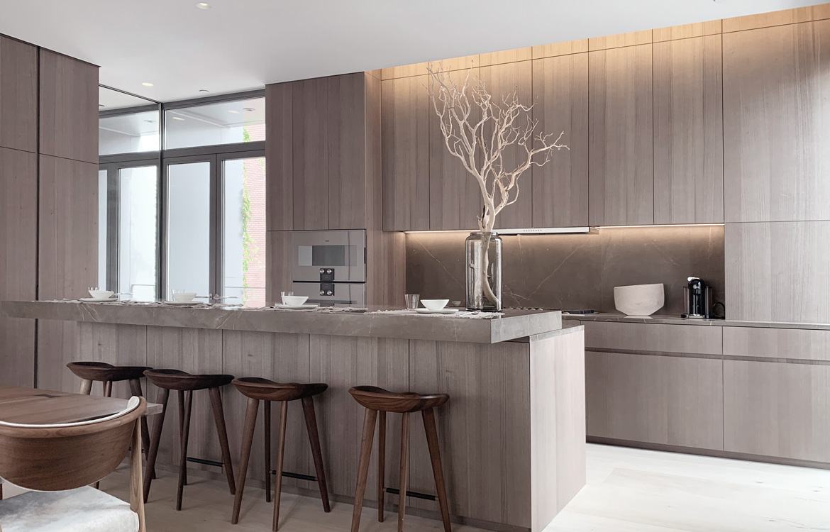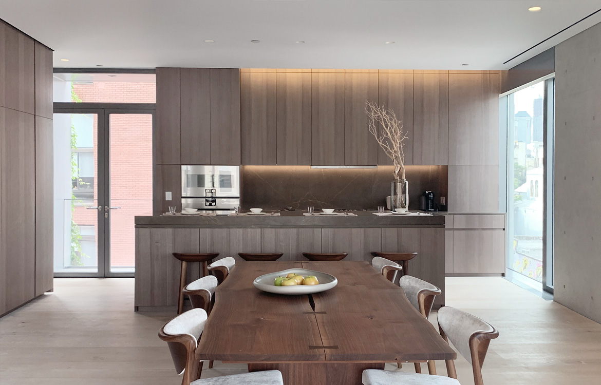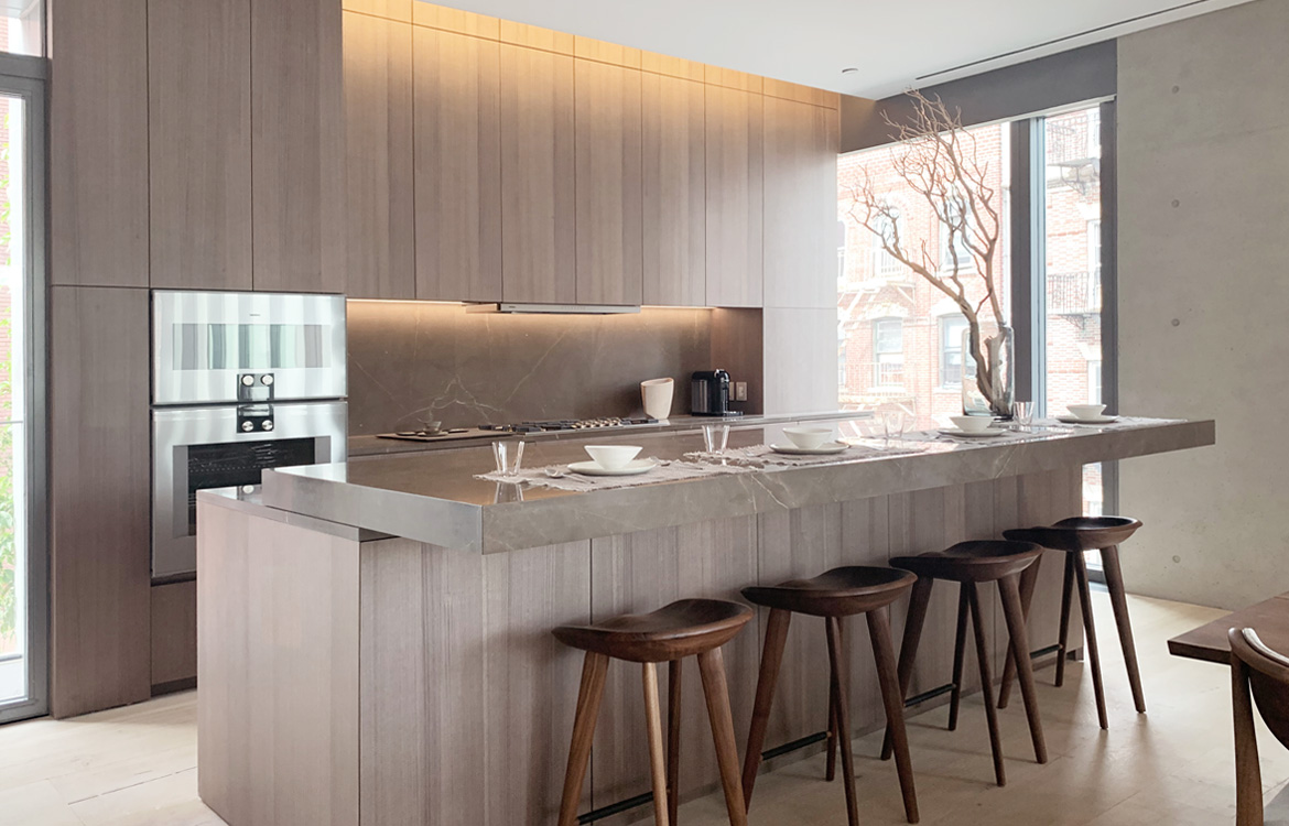 Sumaida + Khurana is both developing and through its affiliate, Foundations Group, building, 152 Elizabeth Street. The project is an ultra-luxury condominium building designed by Japanese master architect, Tadao Ando and acclaimed architect of the interior, Michael Gabellini. It is the first building Ando has designed in Manhattan. Kitchens cabinets made in Italy in refined eucalyptus veneer with islands featuring an elegant sliding countertop that conceals a sink and a pull out faucet.