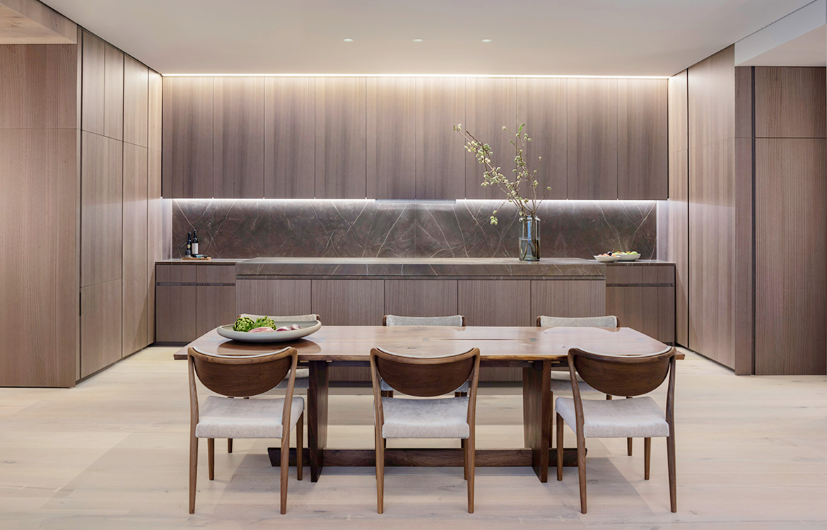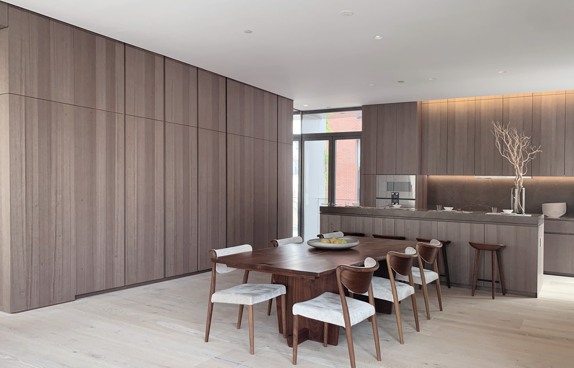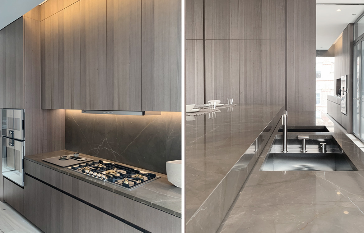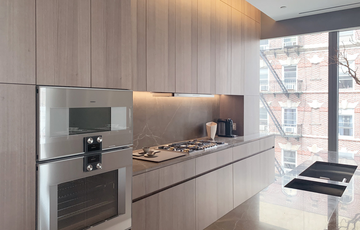 Sumaida + Khurana is both developing and through its affiliate, Foundations Group, building, 152 Elizabeth Street. The project is an ultra-luxury condominium building designed by Japanese master architect, Tadao Ando and acclaimed architect of the interior, Michael Gabellini. It is the first building Ando has designed in Manhattan. Kitchens cabinets made in Italy in refined eucalyptus veneer with islands featuring an elegant sliding countertop that conceals a sink and a pull out faucet.