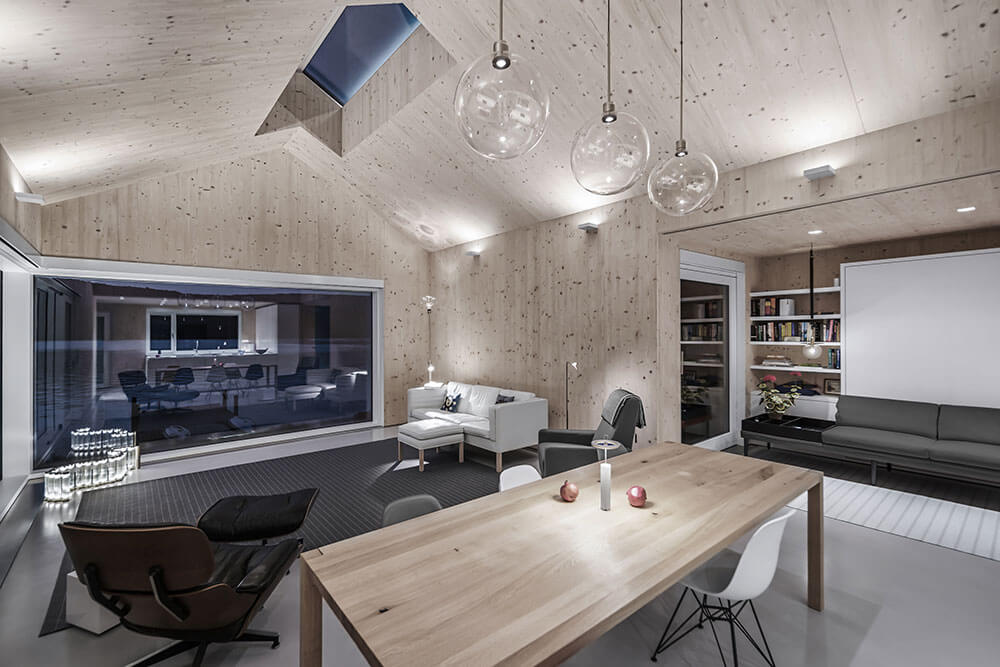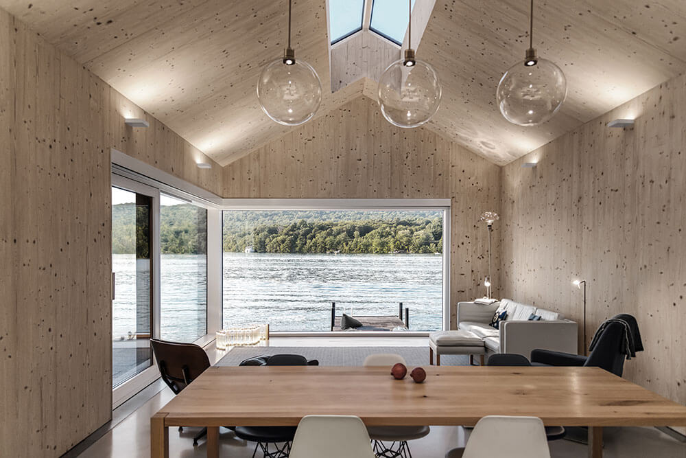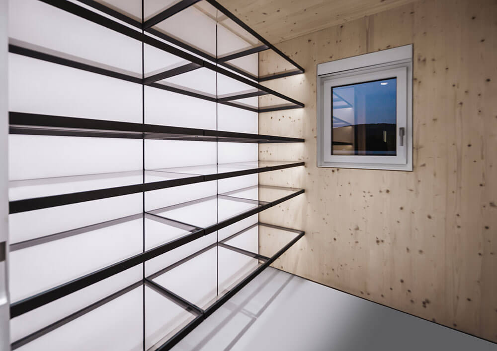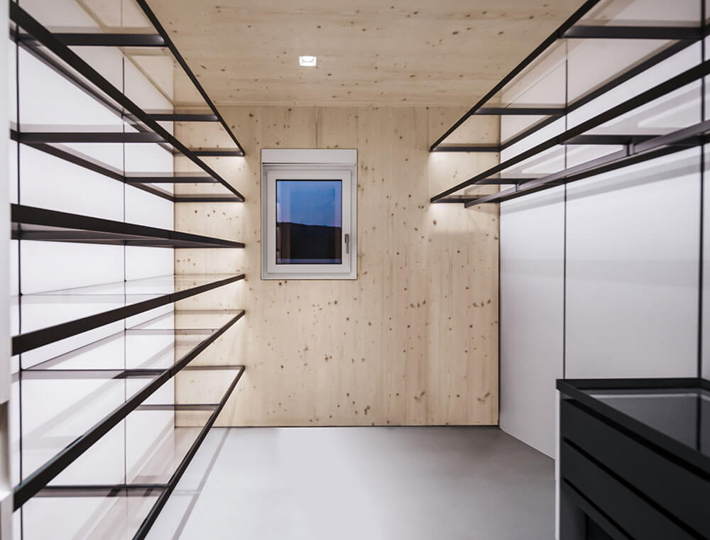 Questa gemma nascosta sulle rive di un lago del Connecticut ricrea un ambiente sereno con una palette di colori luminosi, ma tenui. I mobili su misura di Canova ripropongono una semplice combinazione di colori che rimandano al carattere casual chic di questa residenza di lago. Il laccato bianco opaco è stato scelto come finitura principale per la cucina, i bagni e il letto a scomparsa, che entrano cosi’ in contrasto armónico con il legno rustico dei soffitti e dei pavimenti. L’estetica degli armadi è contemporanea, con apertura delle ante e cassetti con gola, senza maniglie. Il letto a scomparsa integrato con le librerie laterali diventa quasi invisibile grazie al gap molto limitato tra la piattaforma del letto e il telaio circostante. Completa il quadro il sistema premium Tempus di Canova per la cabina armadio, i cui ripiani in vetro e alluminio con LED sono agganciati ad uno schienale in laccato bianco opaco, aggiunge leggerezza ed eleganza alla composizione.