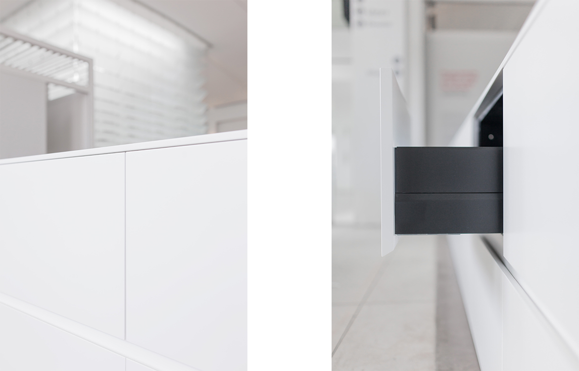 This reception desk for a major museum in New York City was fully custom made in Italy by Canova in Corian and white matte lacquer finish
